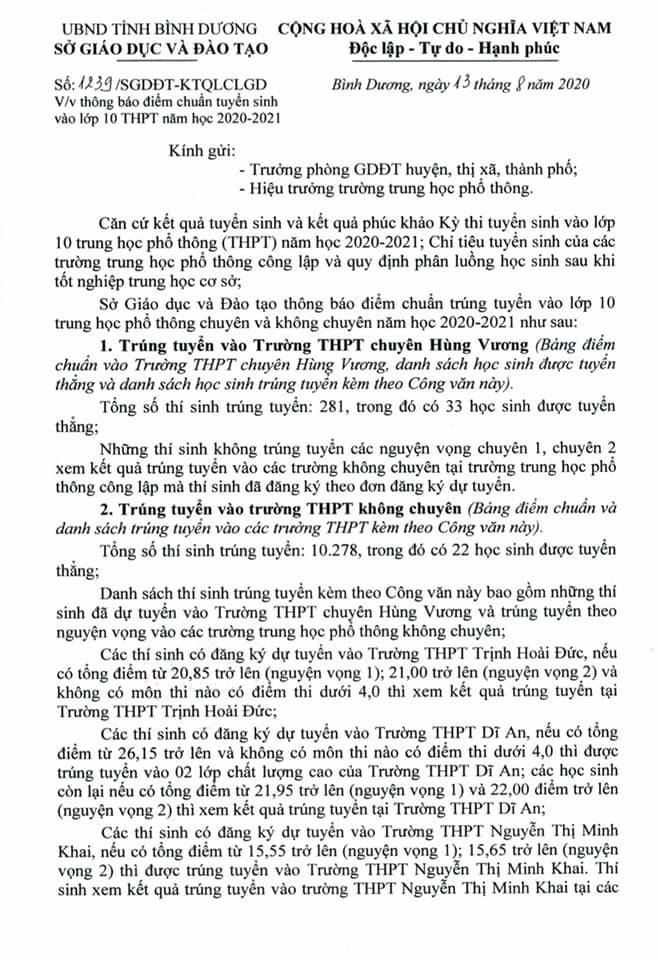 - Tệp 1, 2, 3, 4: Thông báo điểm chuẩn tuyển sinh lớp 10 THPT năm học 2020-2021.