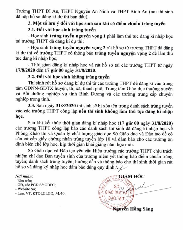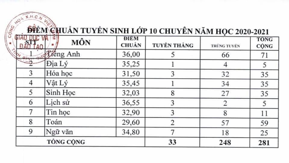 Thông báo kết quả trúng tuyển vào lớp 10 trường THPT chuyên Hùng Vương năm học 2020-2021
