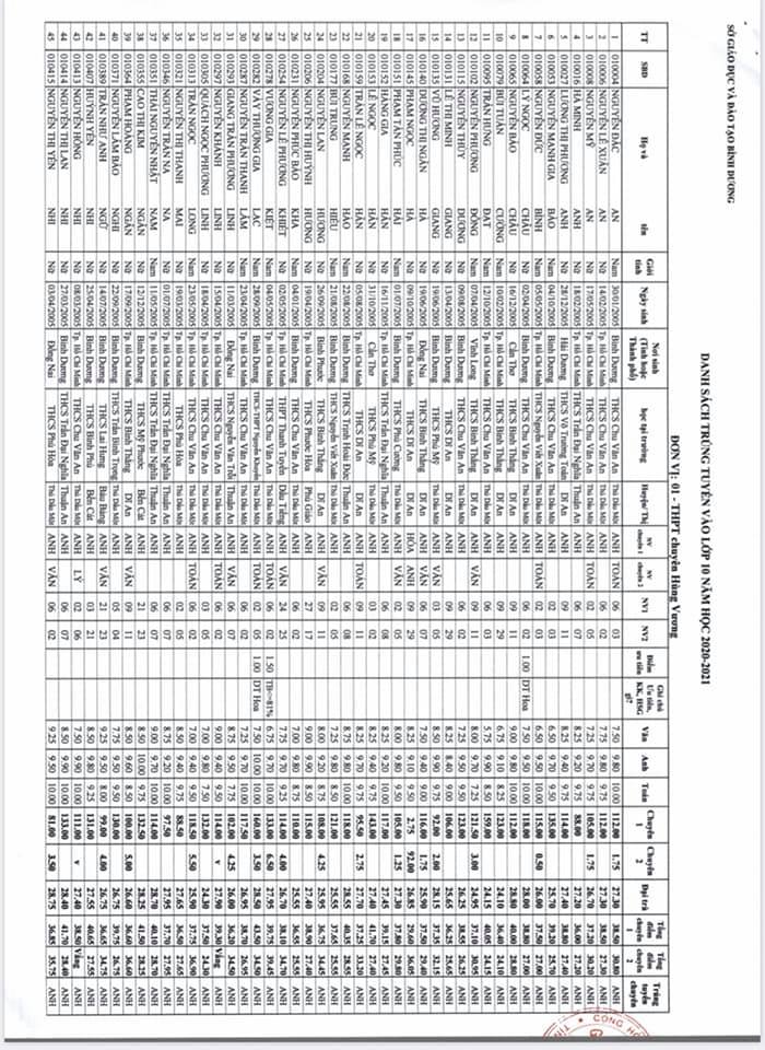 - Các tệp còn lại: Danh sách trúng tuyển vào lớp 10 năm học 2020-2021 trường THPT chuyên Hùng Vương